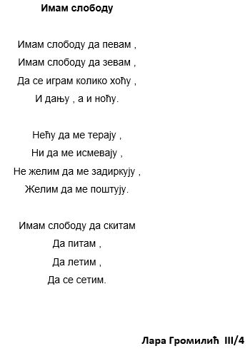 ZBORNIK RADOVA - Lara Gromilić (pesma "Imam slobodu")